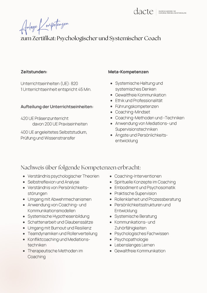 Mich interessiert, was Menschen bewegt – was sie antreibt, was sie blockiert und was sie wachsen lässt. Um meinem Herzensthema – Menschen in ihrer Entwicklung zu unterstützen – noch mehr Raum zu geben, absolvierte ich eine intensive Ausbildung zum Psychologischen und Systemischen Coach bei dacte, der Deutschen Akademie für Coaching, Training und Entwicklung. Und weil Atmung Leben ist, lernte ich in meiner Ausbildung zur Atem-Trainerin, wie eng Atmung mit unseren körperlichen und mentalen Zuständen verbunden ist.